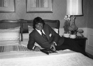 A dapper Moses Malone is pictured here taking media questions after becoming the very first basketball player to go directly from high school into the NBA.
