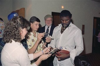 The former Steeler is looking fine in a velvet blazer at Three Rivers Stadium, signing with the team after being drafted.