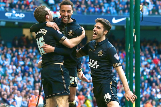 Wigan pulled off the shock of the season in the FA Cup, knocking out Manchester City with a stunning 2-1 quarter-final victory on Sunday at the Etihad Stadium to book a spot in the semi-finals.