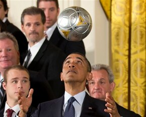 Barack Obama showed his football skills when LA Galaxy visited the White House in 2013, but the US President's allegiance apparently lays with West Ham.