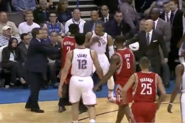 And it would appear that this antipathy for Beverley is shared by Westbrook's Thunder teammates. Reserve point guard Reggie Jackson tried to give Rockets star James Harden the same treatment Beverley gave Westbrook, per The Oklahoman's Darnell Mayberry: