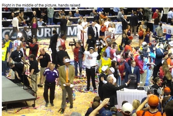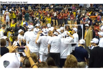 He made it down to the court to celebrate: