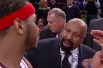 According to Jake O’Donnell of SportsGrid.com, the two men had a brief, Spaghetti Western showdown during a timeout, with Anthony essentially telling his coach to shut up and let the boys play.