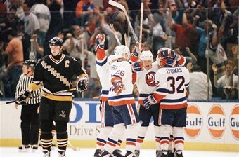 With their backs to the wall, the Islanders managed to avoid being swept with a 3-1 win in Game 4, started to turn the tide with a 4-2 win in Pittsburgh, evened the series with a 4-1 win on Long Island and completed the miracle comeback with 1-0 win Game 7 before a stunned Pittsburgh crowd.