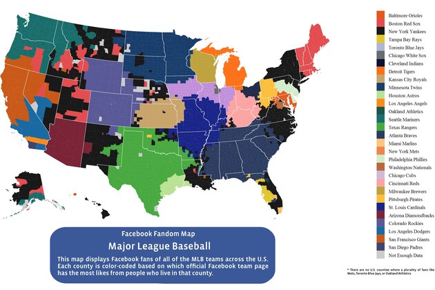 While it's not surprising to see the New York Yankees have fans all over the country, it may shock some to see a few teams failed to make the map at all. According to Facebook, there are no U.S. counties where a plurality of fans like the New York Mets, Toronto Blue Jays or Oakland Athletics.