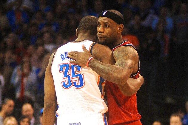 In one corner, you have Miami Heat forward LeBron James, two-time reigning MVP, and four-time winner. In the other corner, you have Oklahoma City Thunder forward Kevin Durant, the 25-year-old upstart and runaway scoring title champ.