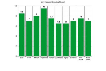 Halapio has work to do with his fundamentals, his steps and his general follow-through. Scouts will be impressed with his stature and length, matched with adequate feet, while certainly loving his work ethic.