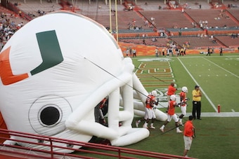 Miami adopted the bi-colored U logo in 1971, which was a substantial step up from its two previous incarnations—particularly the first one, which looked like an angry version of the Vlasic pickles bird.
