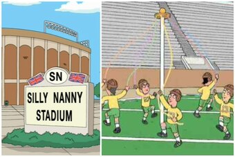 After wearing out his welcome blocking for the New England Patriots with massive showboating, Peter Griffin is shipped off to London to play for the Silly Nannies, who are as good at football as their hilarious name suggests. Somehow the Patriots end up playing the Silly Nannies, who are also smart enough to bail during the opening kickoff, leaving Peter there to sacrifice himself.