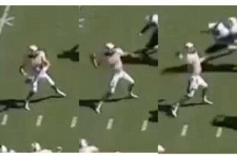 Bortles pumps to throw a quick screen but loses his grip on the ball. He quickly spins around, catches his own fumble midair, eludes two defenders who had him dead to rights, rolls out, finds an open man downfield and hits him in stride for a 39-yard touchdown strike.