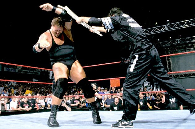 Over the course of his WWE career, McMahon threw his body off of countless structures for the sake of a big pop and a memorable moment. He bled for his craft, went through an unknown number of tables and was even thrown through a glass set at the 2001 King of the Ring.