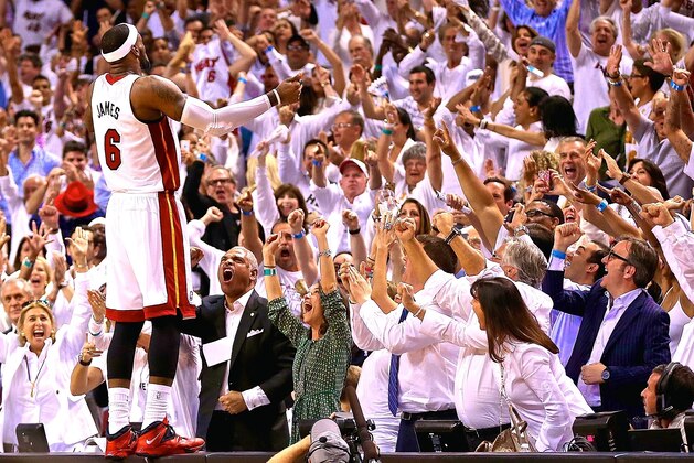 The second lasting memory: Johnson fumbling in traffic while guarded by James before the final buzzer sounded, which prompted the latter to leap atop the owners' table, punch the sky and beat his chest.
