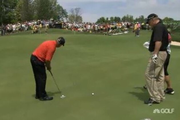 Back in August 2010, Jack Nicklaus, Johnny Miller, Arnold Palmer and Tom Watson played a ceremonial round to mark the grand opening of The Golf Club at Harbor Shores in Benton, Michigan. On the 10th hole, Miller didn't think that there was a chance he'd be able to drain a 100-foot putt, partially due to the bumpy course.