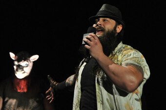 "His real face is a mask!"—John "Bradshaw" Layfield on El Torito.
