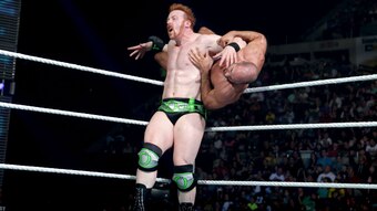 Cesaro slams Sheamus to the mat from a Torture Rack position.