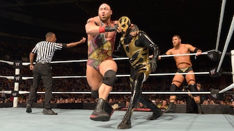 Batista hit a spinebuster on Ambrose. Rollins hit three suplexes in a row.