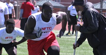 At 6'6" and 275 pounds, Prince has a frame that has a ton of growth potential. He needs to improve his footwork and hand placement in both run-blocking and pass-blocking.