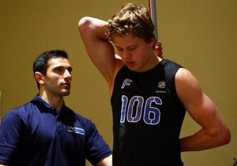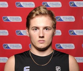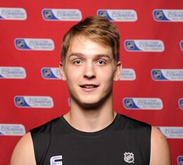 "He's got a full arsenal of offensive tools at his disposal including a "heavy" wrist shot with a quick release and some very adept vision and passing ability. His skating isn't a strength, but it's not a huge weakness either. His top gear is just fine, but he does tend to be a bit slow out of the gate due to having a low and long stride. He's got a high hockey IQ and shows the ability to arrive at the right place at the right time in offensive situations. He comes from an athletic background as his father is a former soccer player, his mother a basketball player, while his sister plays tennis.