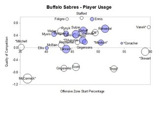 With all the young players, the roster changes and the tight clustering of players in the middle of the chart it is very hard to form an opinion on the Sabres at this time.