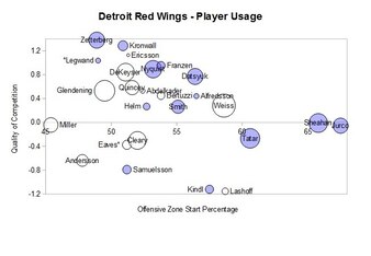 Detroit's most effective players are obviously Henrik Zetterberg and Pavel Datsyuk, the latter of whom was used much more carefully as the season progressed.