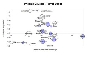 Mike Ribeiro enjoyed some of the most offensively tilted minutes in the league, and while the team did expectedly well possession-wise, he should have scored more than 47 points. Yandle enjoys similar treatment on the blue line, for example, and led the Coyotes with 53.