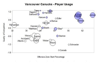 That's one reason why Ryan Kesler is so impressive, and why the team is resisting his departure. He takes on the team's top opponents in both zones and yet still wins the possession game and leads the team in goal scoring by a wide margin.