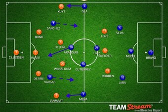 Unfortunately it didn't work, and La Roja began conceding space in midfield as they were outnumbered three vs. two. Robben began slipping into space more regularly, so Chile tried something else.