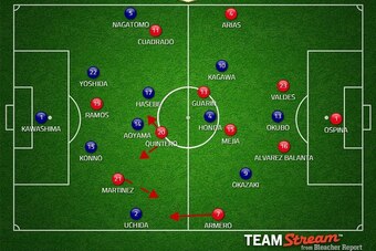 Japan played their standard 4-2-3-1 formation, but still no Yoichiro Kakitani—the striker many have been yearning for—in sight.