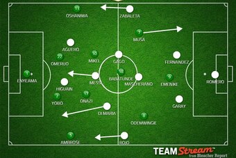 Odemwingie started on the right, Babatunde through the middle and Musa this time on the left, with the focus on releasing the latter down the flank.