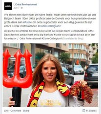 After Axelle Despiegelaere was spotted during Belgium's match against Russia, L'Oreal made her its star of the day.