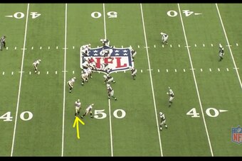 Look at Brees in this picture; his focus is on that safety. If the safety floats to the outside, Brees knows his option is Meachem, who is about to break off into a post route inside. If the safety stays near the center of the field, Brees knows he has Graham wheeling outside in single coverage on a nickel corner.