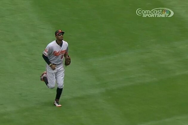 Adam Jones Loses Track of Outs, Allows Yoenis Cespedes to Jog Home on Sac Fly