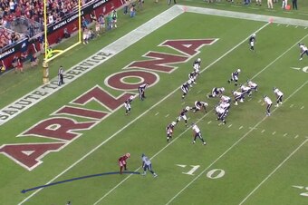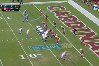 With the Cardinals up 10-7 as the first half winds down, the Lions have the ball at the Arizona 3-yard line immediately following the two-minute warning.