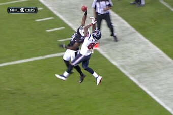 This is supposed to be a fade to the corner of the end zone to Pro Bowl receiver Andre Johnson. What you are about to see is an amount of dumb luck not seen since the "Immaculate Reception."
