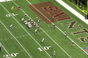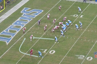 Why did it work to perfection? On 4th-and-1 in a jumbo formation, everyone on defense, including Peterson, is thinking running back Maurice Jones-Drew is about to get the ball. Little did they know, Noble would sneak by them en route to a 62-yard touchdown.