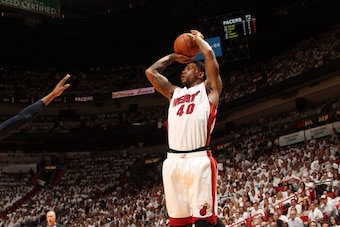 Haslem, on the other hand, is an underdog to start. He averaged just 3.8 points and 3.8 rebonds per game in 2013-14, and it's clear that the 34-year-old is on the decline in just about every aspect of his game. Perhaps most importantly, Haslem's days as a floor-spacing threat are few and far between.