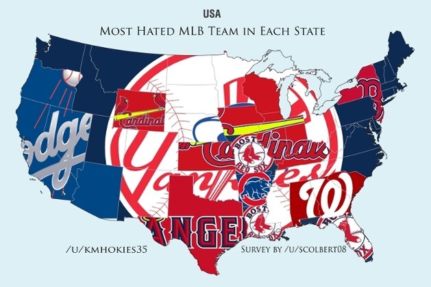 Last week, we got a glimpse of the most hated NBA teams and NFL teams. Now, we are able to see which MLB team each state can't stand.