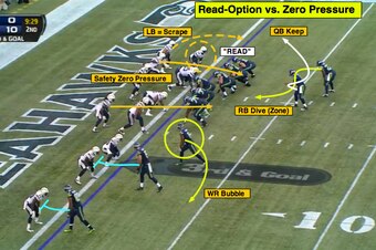 The Seahawks' ability to use packaged plays (multiple reads within the scheme) creates stress for defensive run/pass keys and option responsibilities inside of the red zone.