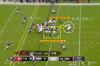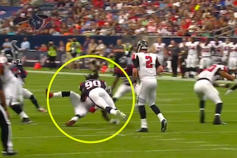 However, in this situation, the Texans rookie used his athletic ability to take advantage of the Falcons' blocking technique while delivering a violent strike to running back Antone Smith.