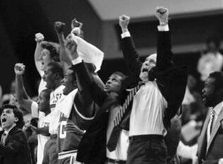 In his seventh season as a head coach between Bucknell and Iona, Jim Valvano was making his first appearance in the NCAA tournament. After eliminating him, the Quakers went through two guys named Dean Smith and Jim Boeheim before defeating Lou Carnesecca, who never had a losing season in 24 years with the Red Storm.