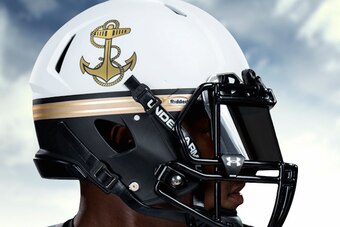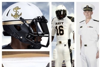 This football uniform may look somewhat familiar to you, and that's because it was inspired by the Naval Academy's Summer Whites military uniforms.