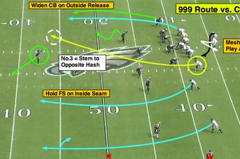 And that will allow Foles to work the mesh point play action while targeting the No. 3 receiver on the “999” route.