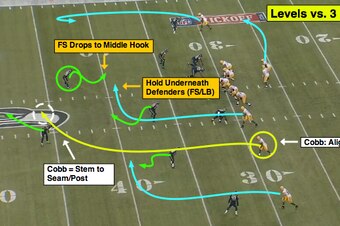 If the Jets want to pressure Aaron Rodgers, then the sight-adjust slant and stick-out are options. And if Ryan wants to play more coverage, then look for the intermediate concepts that target both zone and man schemes with Cobb working the middle of the field.