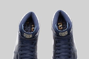 Both sets of shoes feature navy blue and pinstripes.