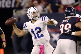 Indianapolis jumped out to a hot start against the Houston Texans on Thursday Night Football but allowed the Texans to climb back from a 24-point deficit to make a game of it in the end. The Colts notched 456 yards of offense, but their defense allowed for a nail-biting conclusion. After all, according to Around the NFL, quarterback Andrew Luck is on pace for quite a season: