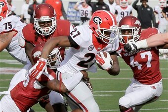 That’s 68 carries for 345 yards and three touchdowns in two games for Chubb. And, according to ESPN's Brett McMurphy, Chubb joins Herschel Walker and Rodney Hampton as the only two freshman running backs to run for 200 yards in a game for Georgia.