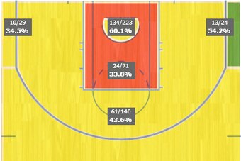 Roles haven't changed much, if at all. Their hot start is the product of methodical basketball—a deliberate offense with a distinct pecking order and a defensive system comprising hybrid zones that force opponents into mostly mid-range jumpers and three-pointers, as shown below: