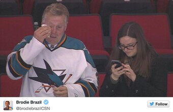 Recently Sharks goalie Troy Grosenick recorded the first shutout of his NHL career…in his very first start! His father, Scott Grosenick, was on hand to witness his son’s milestone and couldn’t contain his case of the cries.