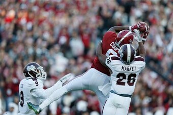 Seals-Jones didn't have a catch against the Crimson Tide. Jones wasn't in coverage for Robinson's touchdown. And in one of the biggest plays of Alabama's season, Jones outmuscled Wilson in the end-zone for an interception in the third quarter that stopped a Mississippi State scoring drive.