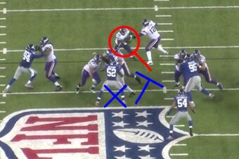 Here is now where Beason plays above the X's and O's. He sheds his block—something the Giants linebackers (included a hobbled Beason) have had trouble doing this year.